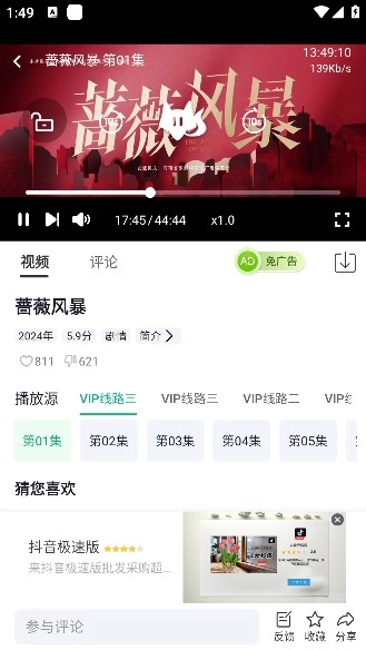 4. 点击播放按钮开始观看,可调节清晰度、速度等参数
