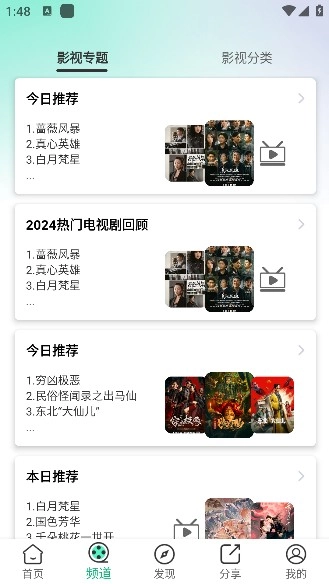 2. 点击顶部分类标签(如电影、电视剧),快速切换内容类型