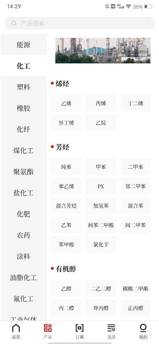 2、在主页浏览并选择感兴趣的产品类别,如能源或化工;