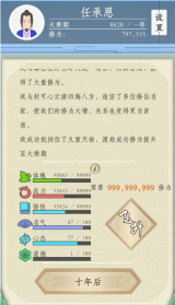 孩子相当坑爹,真的是字面意义上的坑爹。在你达到大乘境界之前,千万不要把功力传给他,不仅毫无用处,还可能直接被他吸干,甚至死后还会心态崩塌。等你大乘之后,就可以直接用修为猛灌,培养出十个大乘的孩子后,你就可以愉快地疯狂点十年吃修为了(小提示:在后期疯狂修炼十年的时候,如果你的房子有空位,可能会一下子多出几十几百个孩子,我就是这样。不过后来我又疯狂修炼了十年,几百个孩子都挂了,最后只剩下11个)。