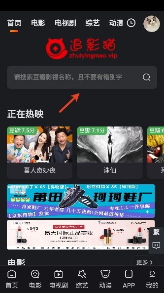 使用搜索框输入关键词,如片名或演员名,快速查找影视作品。