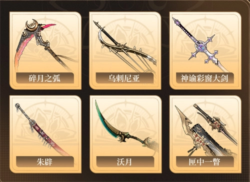 2. 可选碎月之弧/乌刺尼亚等6件限定武器