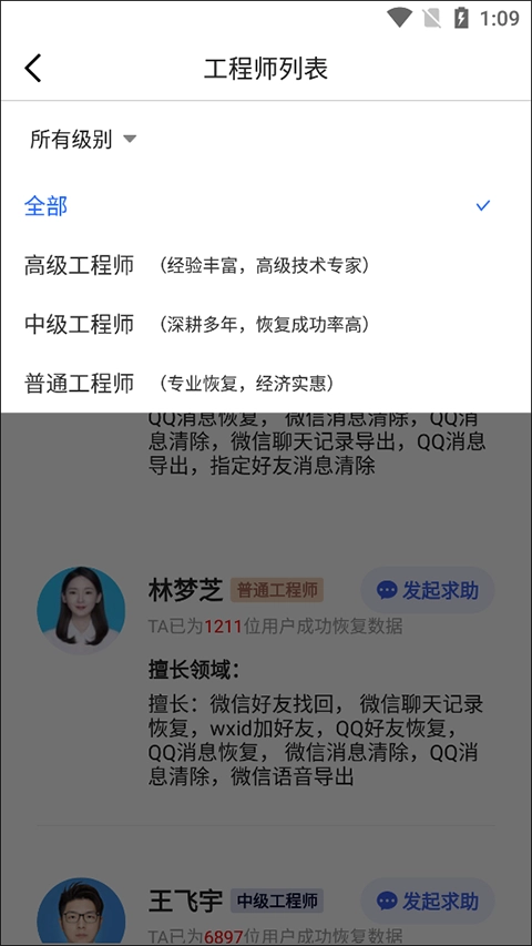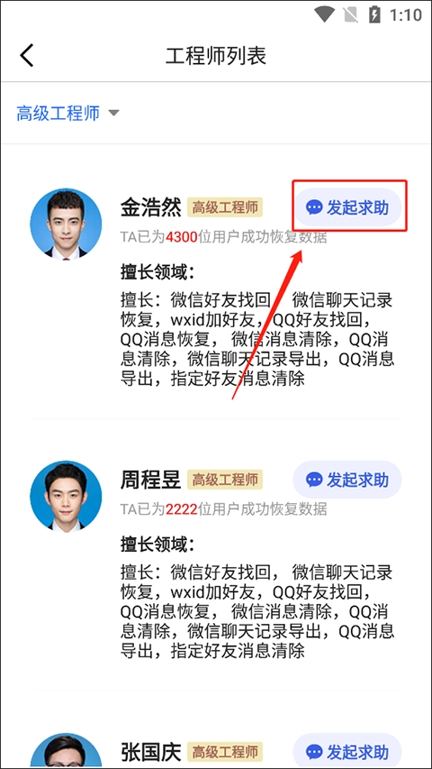 3. 选定工程师,发起求助。
