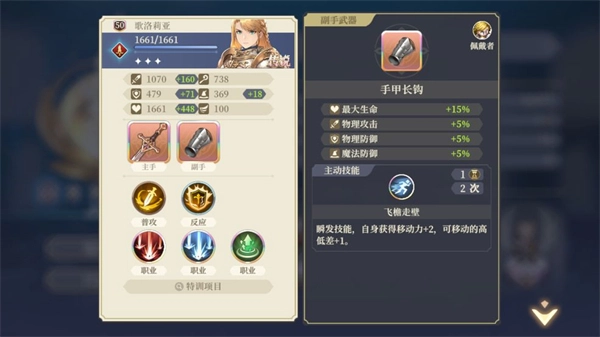 歌洛丽亚:扬旗进军、圣枪投掷、飞檐走壁(SSR手)武器加200速的SSR武器