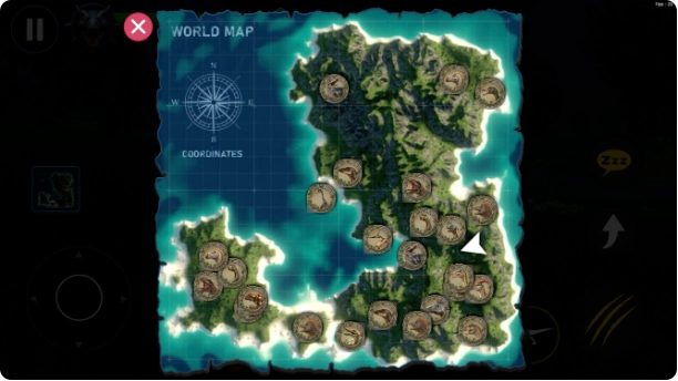 4、点击地图图标查看岛屿分布,识别资源点和危险区域,规划探索路线。