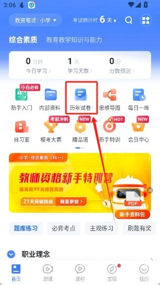 2. 选择顶部导航栏的"历年试卷"入口