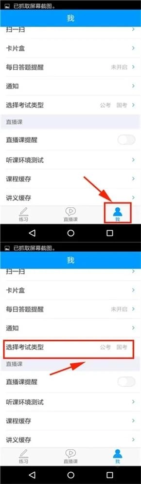 2. 点击账户设置中的"考试类型"选项