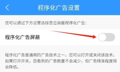 3、选择“程序化设置”,开启“程序化广告屏蔽”开关,降低广告推送频率。