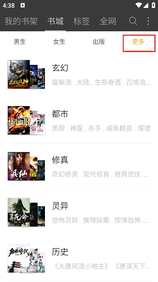 分类筛选帮助用户按类型查找小说。