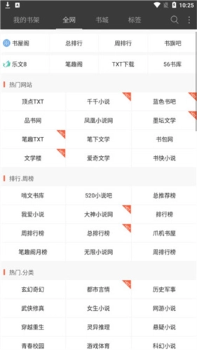 使用标签或全网选项查找特定小说网站。