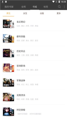 选择分类如男生、女生或出版,筛选心仪作品。