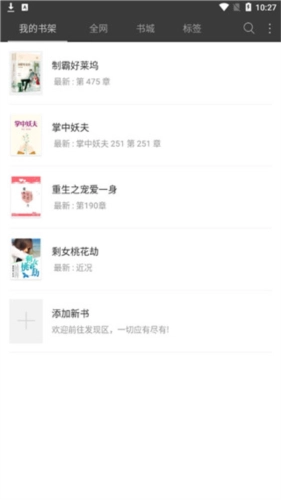 添加书籍到书架,下次直接访问续读。