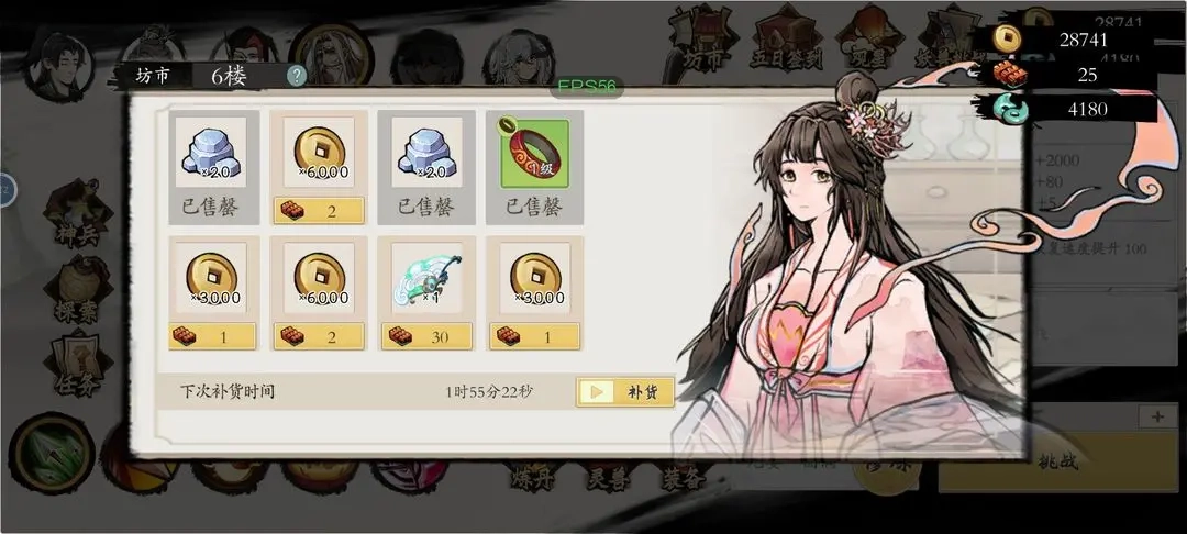 • 坊市:金币充裕时包场采购,两小时刷新货品