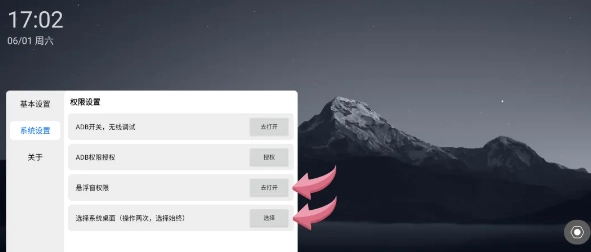 4.检查悬浮窗权限是否打开,设置迪友桌面为系统桌面,选择“始终”。
