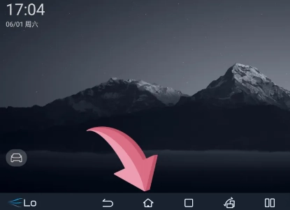 导航栏返回键长按返回系统桌面。