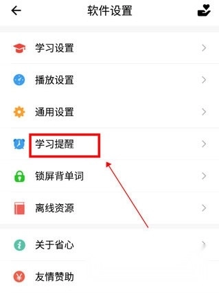 2、选择"学习提醒"功能模块