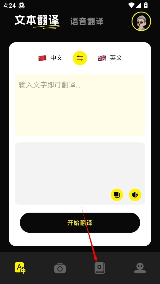 1、启动应用进入翻译界面,在输入框键入待翻译内容,点击翻译按钮