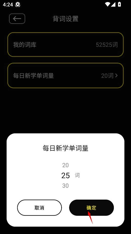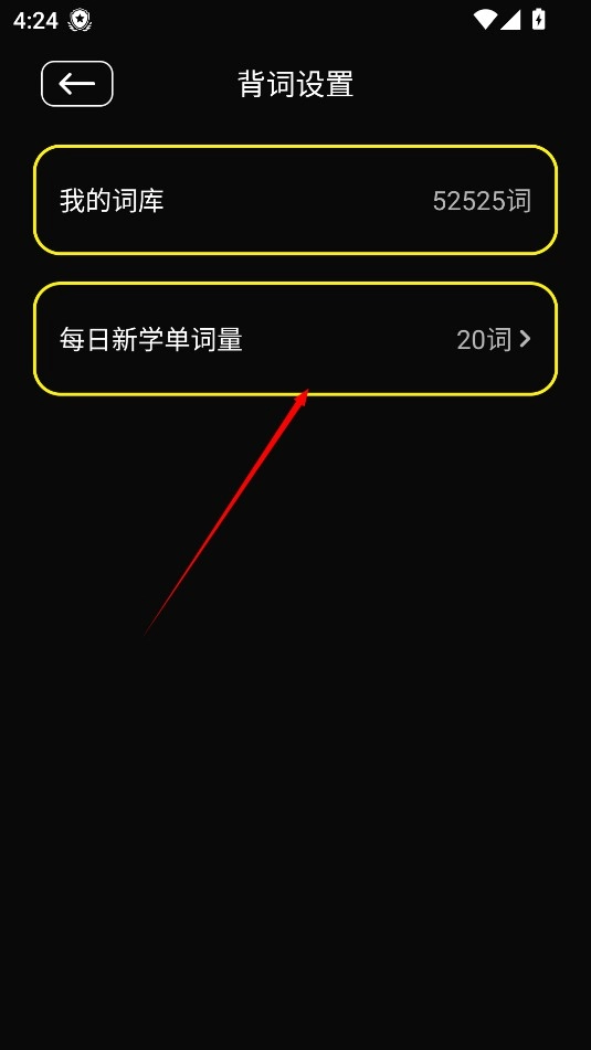 3、进入"每日新学单词量"设置项