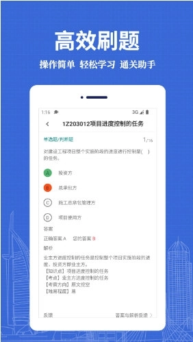 一级建造师备考宝典是专为建筑行业执业资格考试设计的移动学习工具,整合了工程经济、项目管理、法规实务等全科目内容。这款应用通过智能算法追踪用户学习轨迹,动态推送适配个人能力的训练题目,帮助考生利用通勤、午休等碎片时间高效提升。软件内嵌五万余道真题资源,涵盖近十年考试真题及高频模拟题,每道题目均配备名师视频拆解答题脉络。针对实务科目中的难点,特别设置《建筑》《市政》《机电》等专项题库,配合错题重练系统强化薄弱环节。移动端特有的学习数据可视化功能,实时生成正确率曲线与知识点掌握图谱,让备考进度清晰可控。