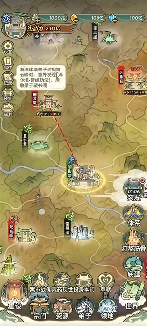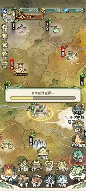 2、派遣弟子占领周边领地,每日探索地图触发随机事件。