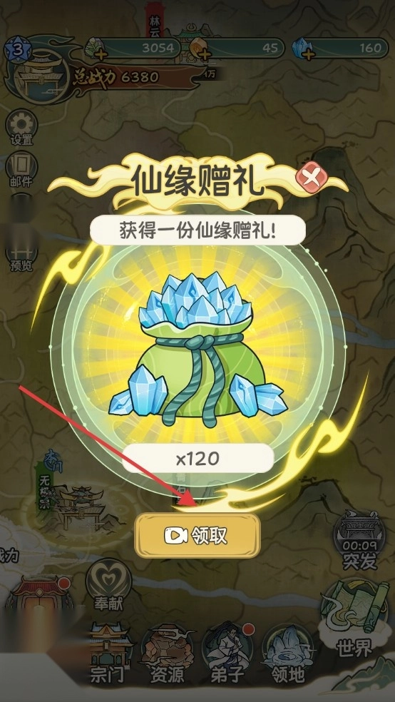 5、遭遇仙缘赠礼及时领取资源,利用灵脉加速宗门建设。