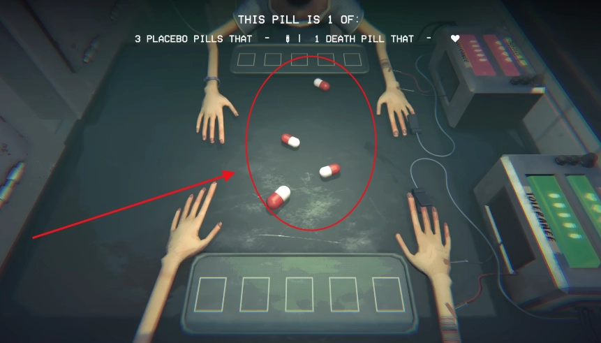 3、玩家需要挑出一颗药丸服用,药丸分为未知类型和毒药,未知药丸消耗抗药性,毒药直接扣血。
