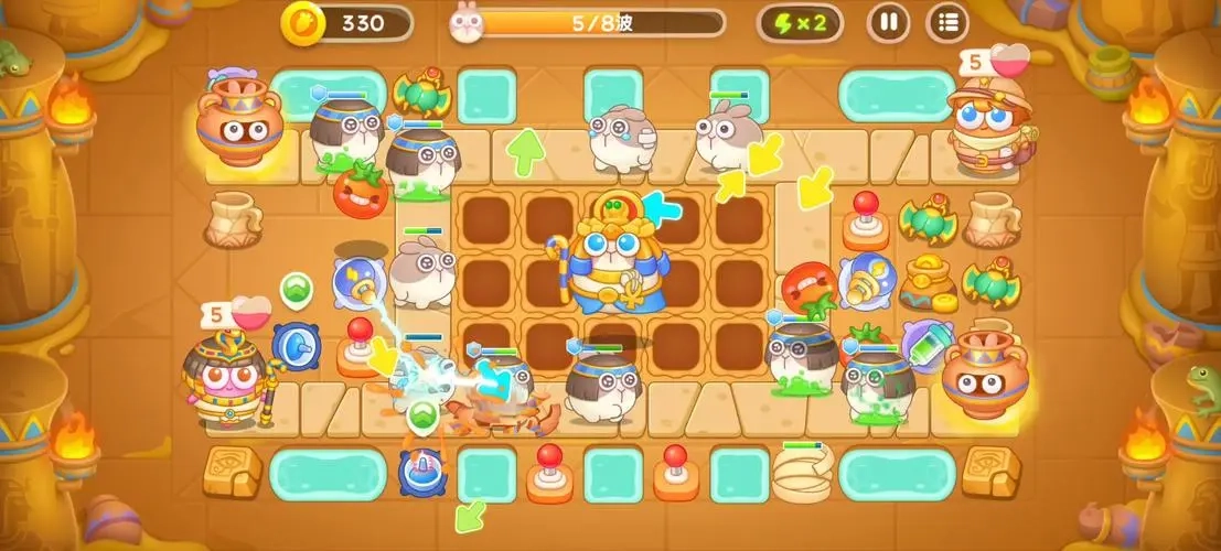 暂停键妙用:遭遇冻冻兔结冰或吊索兔偷塔时,及时暂停调整防御布局。