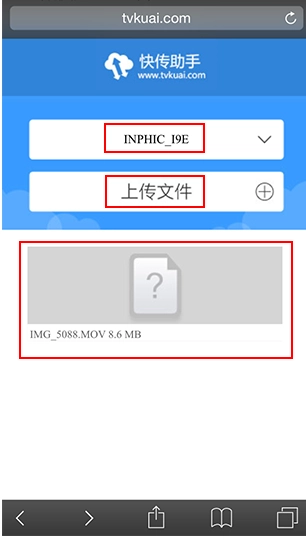 步骤二:打开手机浏览器,输入 www.tvkuai.com,选择目标设备和要上传的文件。