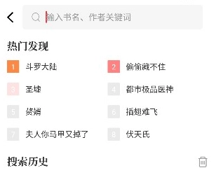 查找书籍有两种方式:顶部搜索框输入书名关键词,或在分类标签页按题材筛选。