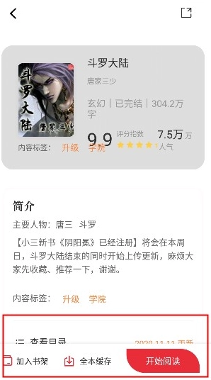 书籍详情页显示更新状态与章节列表,点击"加入书架"永久保存书目。下载按钮可缓存全本内容。