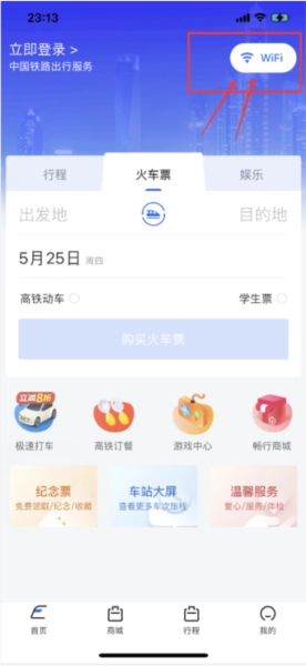 进入APP主页,点击高铁订餐入口。