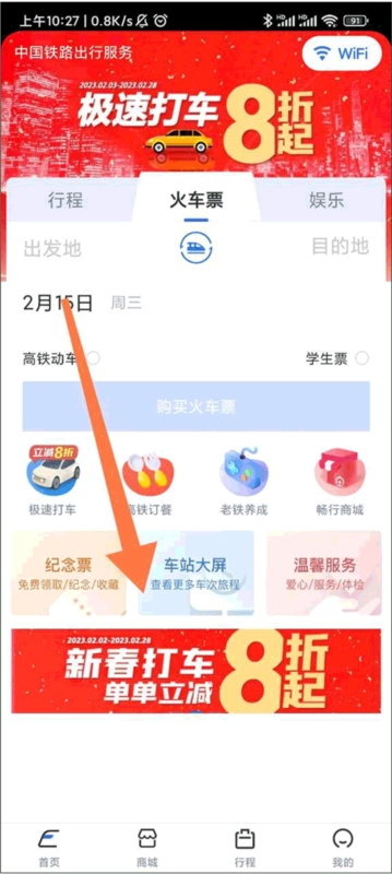 打开APP主页,查找车站大屏功能入口。
