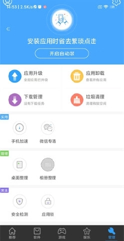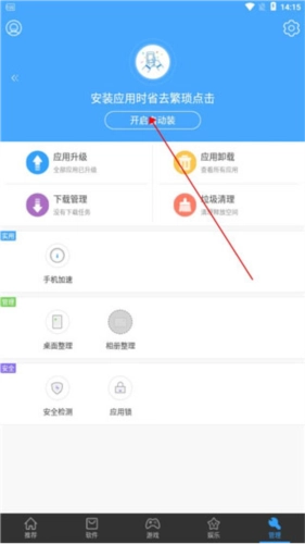 2、点击【开启自动装】,实现应用一键直接安装。