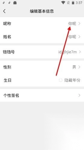 3、进入编辑基本信息界面后,点击昵称栏;