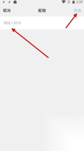 4、在修改昵称界面,将以前的昵称删除,输入新的昵称后,点击右上方的完成,即可成功修改昵称。