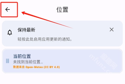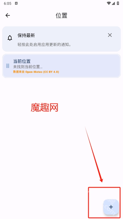 1、从魔趣网下载微风天气APP安装到手机。打开应用后,进入首页需添加位置信息。
