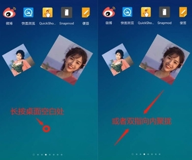 启动方法:长按手机桌面或双指聚拢,弹出添加小部件选项。