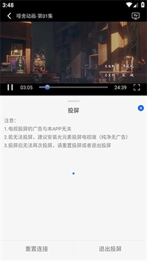 4. 投屏操作:播放时点击TV图标,自动搜索可用设备