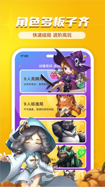 ● 自建房间系统:自由组合狼人、预言家等近30种身份,调整发言时长与警长设置,定制专属板子