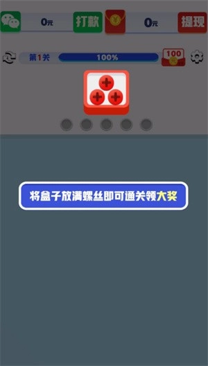 核心玩法直观,点螺丝掉落零件领红包,提现门槛低。