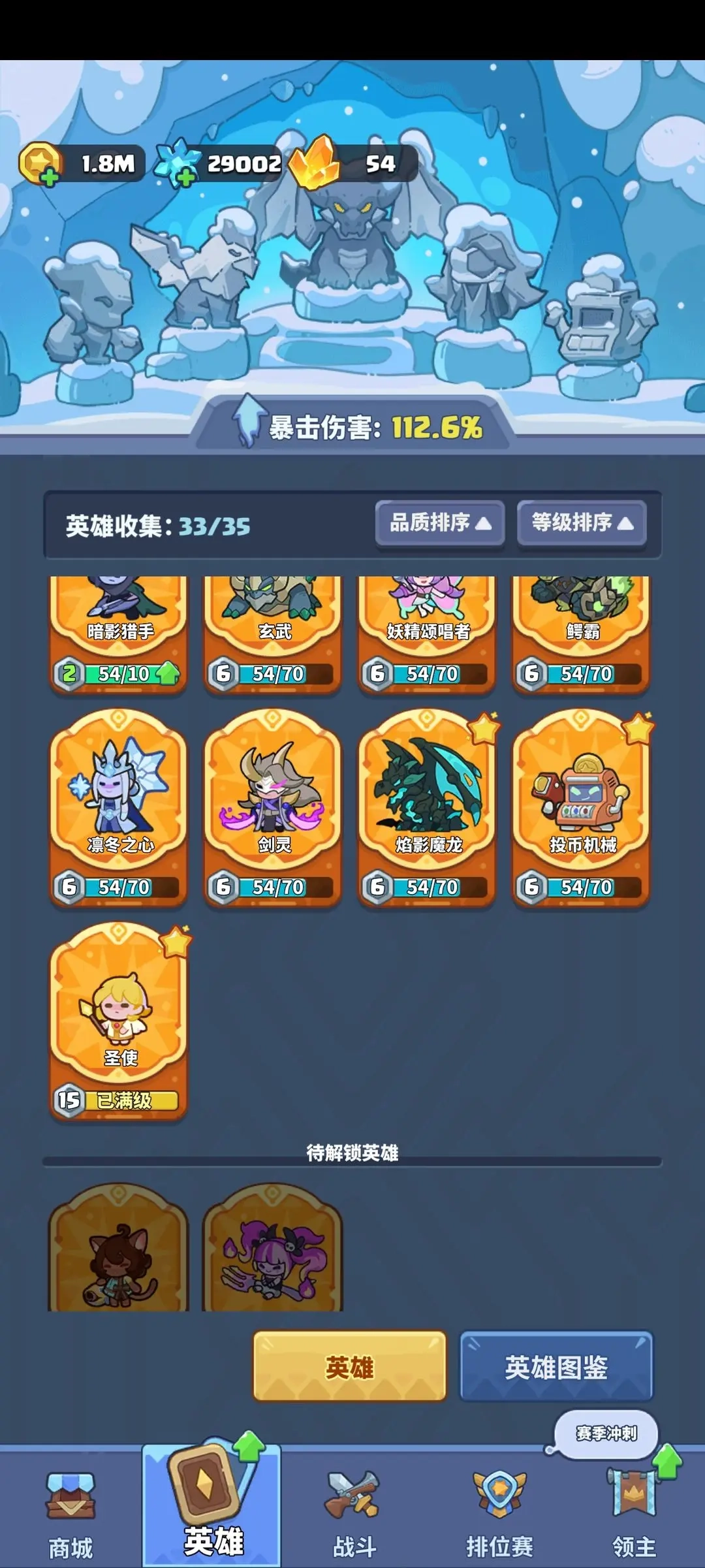 新手优先联合作战,初期培养鳄霸到15级稳定推图;随后拉打币机和妖精,剑灵到12级,再提升打币机12级以自强噩梦模式;猫咪和天使最后升15级。排位赛上分可选主C路线(先天使15级)或辅助路线(先剑灵12级)。英雄养成精粹靠单抽积累,金币多打联合副本获取。
