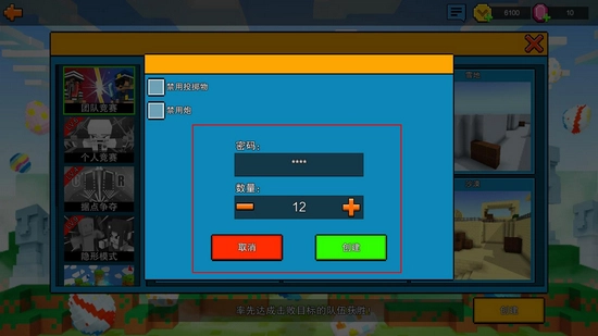3.经典模式可设密码房间:选择模式→创建房间→设置密码通知好友加入
