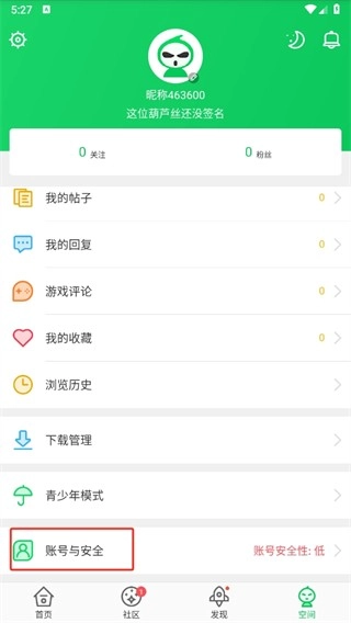1. 进入空间页面选择账号与安全