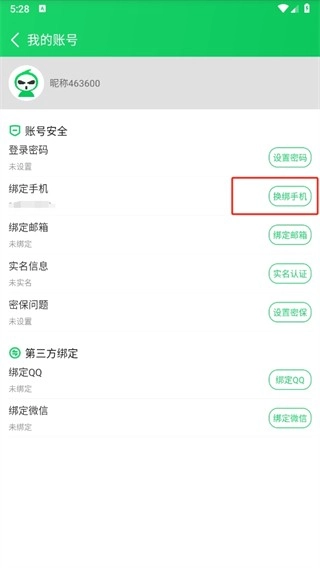 2. 点击换绑手机功能