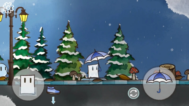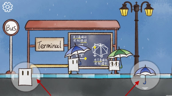 2.左下虚拟摇杆控制角色移动,右下摇杆操控雨伞方向