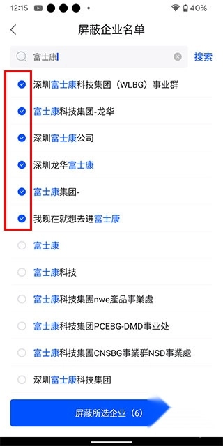 5. 在搜索框输入目标企业名称(例如:富士康)