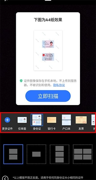 2、证件处理:身份证、护照等证件生成高清电子复印件
