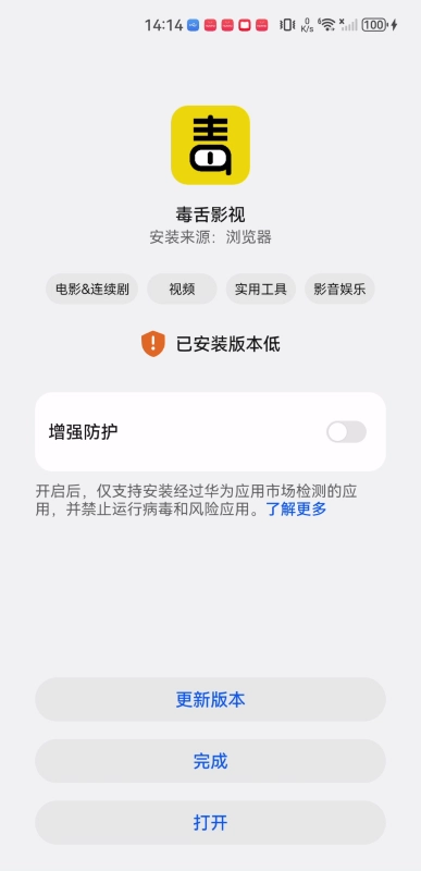 5. 安装成功后点击“打开”,进入毒舌影视界面。