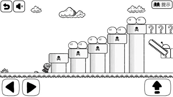 黑白极简画风构建独特视觉系统,元素辨识度高。操作界面仅三个虚拟按键,但判定精度要求严格。关卡陷阱设计充满心理博弈,如1-2关的延时塌陷机制。成就系统与死亡次数绑定,收集过程增加黑色幽默。存在大量meta元素,开发者直接与玩家互动。部分道具功能反直觉,翅膀飞行受按钮位置限制。移动平台存在碰撞体积误差,容易意外坠落。