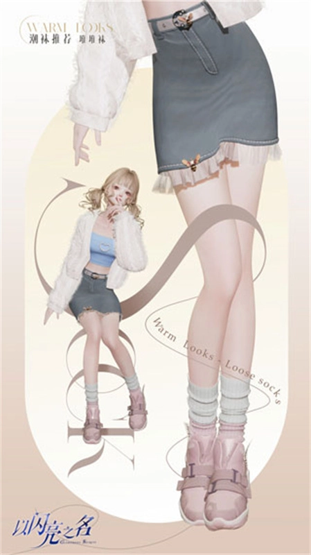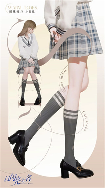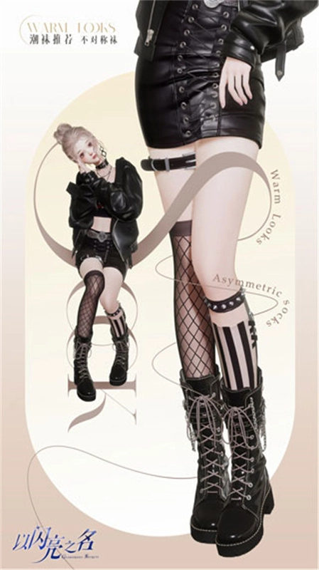 机车风搭配不对称高筒袜,学院风采用条纹小腿袜,甜美系选择浅色针织堆堆袜